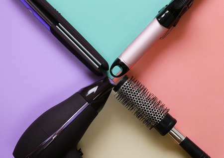 hairdresser's tools - hair drier, curling iron, hairbrush