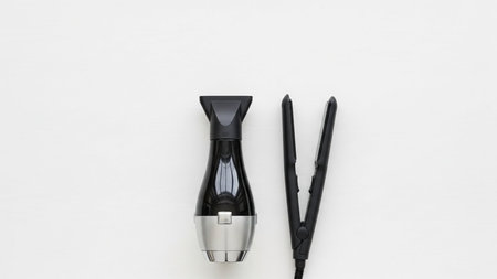 A sleek and modern hair styling set featuring a curling iron and a blow dryer. Perfect for achieving salon-quality styles at home.