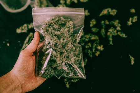 marijuana in bag in concept illegal sale of drugs. cannabis weed