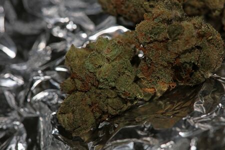 Cannabis Buds closeup. hemp Drug and Medicine. Dry Weed Flower