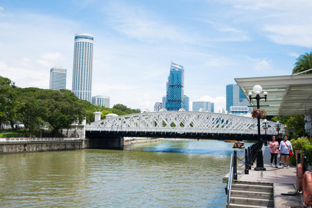 Singapore - 05 Nov 2017 : Anderson bridge at singapore river in Singapore