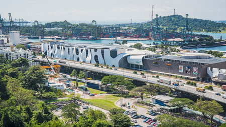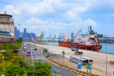 SINGAPORE CITY, SINGAPORE - MARCH 14, 2024: Infrastructure of Port of Singapore, one of busiest shipping ports in the world.