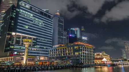 Business Financial Downtown City and Skyscrapers Tower Building at Marina Bay night timelapse hyperlapse, Singapore