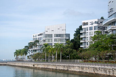 Singapore Dec 29 2021: View of Keppel bay with modern residence in Singapore city. Keppel Bay is the crown jewel in Singapore's southern shores