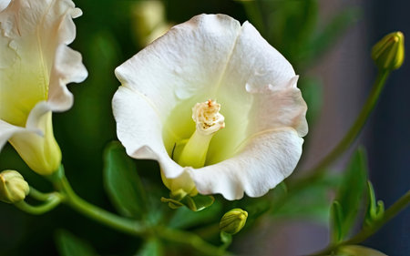 Beautiful white freesia flower close-up with blurred background