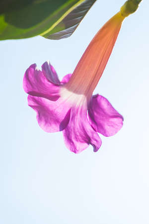 trumpet flower Flower bud in the plant with blur green leaf background