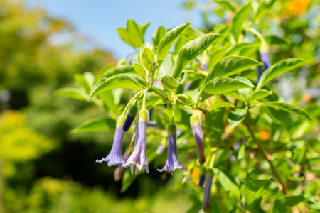 Saint Gallen, Switzerland, July 14, 2024 Lochroma Australe or blue angels trumpet plant at the botanical garden