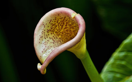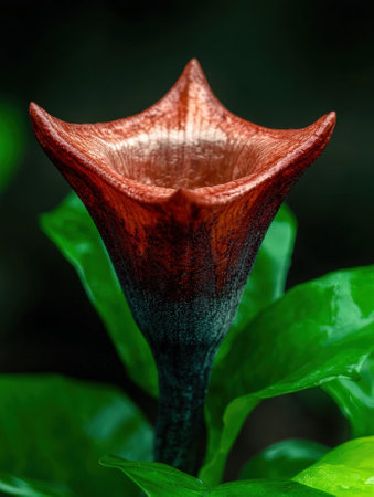 Exotic cobra lily flower with dark, moody lighting.