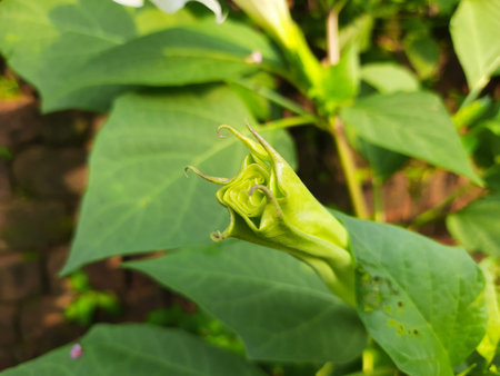 Datura plant with flowers. Its other names thornapples, jimsonweeds, devil's trumpets, moonflower, devil's weed and stramonium. Hindus offer it to Lord Shiva. It is used a lot in A