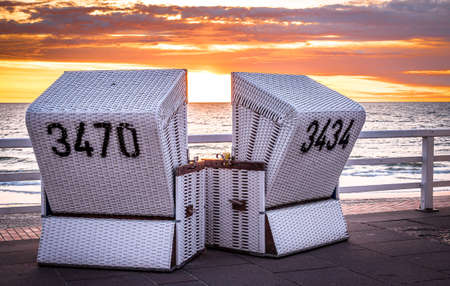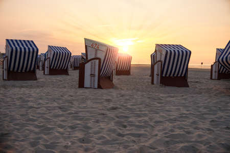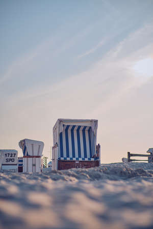 Beach - chair on the island Sylt on sunset. Germany.