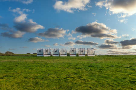Beach baskets at the beach Dockkoogspitze near Husum. North Frisia in Germany