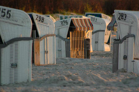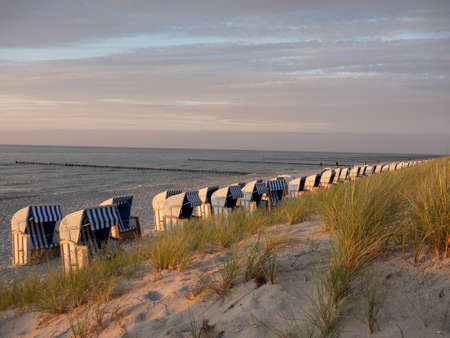 beach chairs at the evening, north sea, buesum