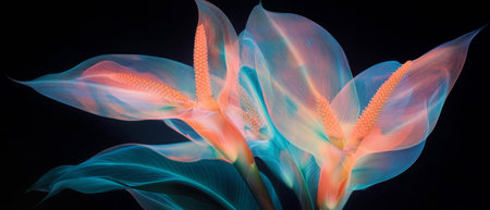Vibrant X-ray representation of heliconia flower with intricate bracts and tropical features