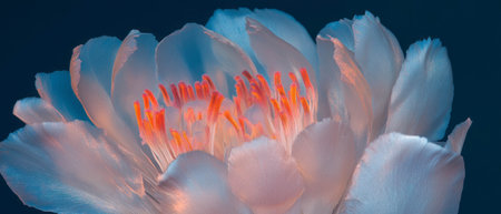chrysanthemum buds captured in ultraviolet photography with focus stacking technique. the uhd image showcases soft blue hues and fluid lines, creating a romantic scene that's hard to believe. ai generated