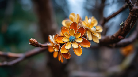 Warm Blossoms: A Branch Adorned with Orange and Cream Flowers