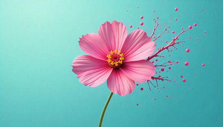 Elegant pink cosmos flower on a teal background