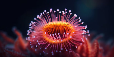 Wonderful aquatic life in ocean seabed. anemones. Coral reef design. Generative AI. Illustration for banner, poster, cover, brochure or presentation.