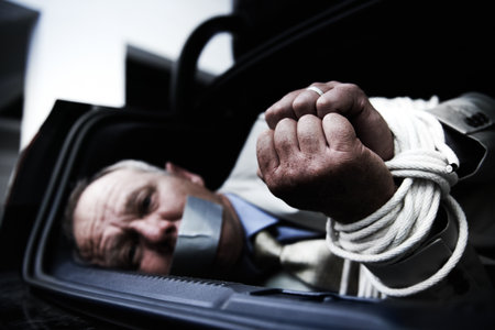 Theres no escape. A frightened businessman lying bound and gagged in the boot of his car.
