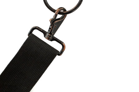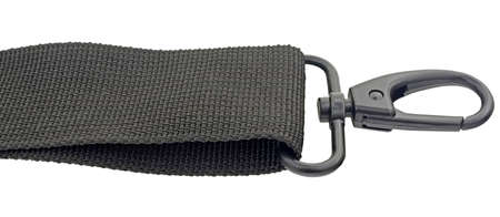 Snap hook and a black fabric belt detail on white