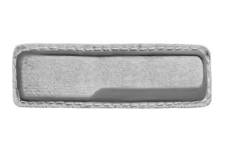 Blank gray fabric clothes label patch isolated on whtie background