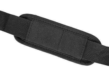 Black fabric shoulder strap pad isolated on white background