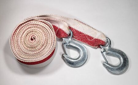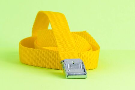 Ratchet straps to control load loading. Cargo securing belt. Close up on a white background