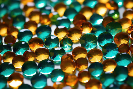 A bunch of shiny colored gems are arranged on a table, AI