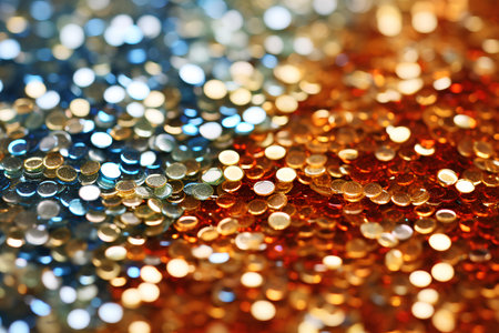 abstract background of golden and blue sequins close-up macro