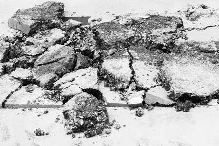broken asphalt before reconstruction, note shallow depth of field