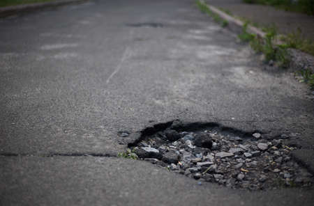 broken or damaged asphalt on he road. car insurance concept