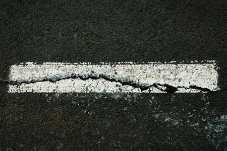 Worn white road line on cracked asphalt close-up
