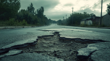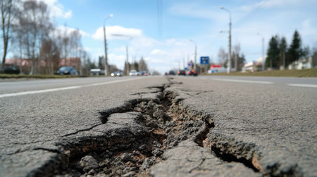 AI Generated. Cracked Asphalt Road After Earthquake Disaster