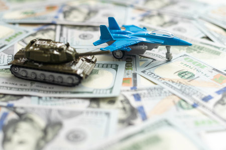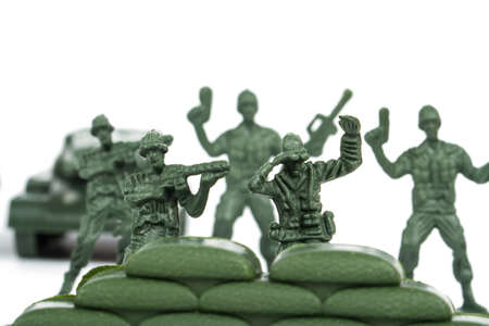 The concept of war and confrontation, political crises, toy tin soldiers attacking each other