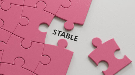 puzzle pieces with missing pieces with STABLE business word.close up of puzzle pieces with missing pieces,Business Concept.3D rendering.