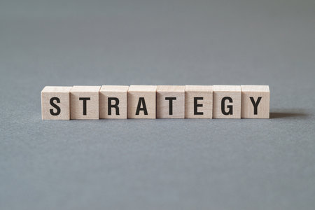 Strategy - word concept on building blocks, text, letters