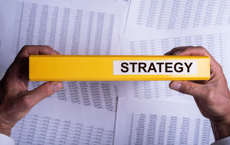 Folder with business strategy word, inscription. Strategic plan