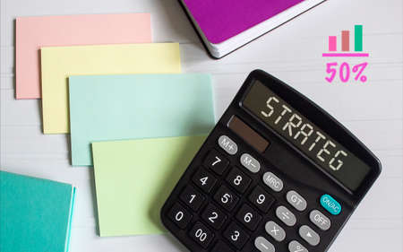 Strateg text on calculator, color stickers and graphics