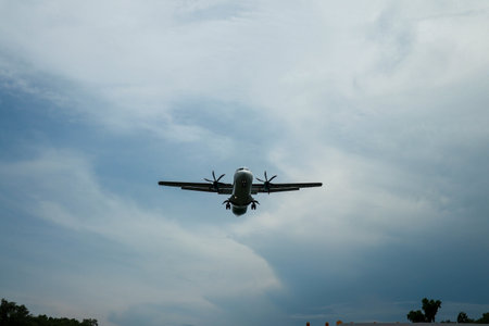 Transport plane landing with blue sky in the background