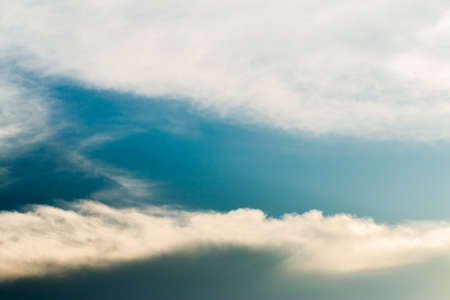 Beautiful blue sky with white clouds and vivid colors at sunset without horizon, background image
