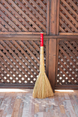 broom on the floor with wall background