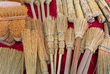 broom on the market in the countryside, closeup of photo