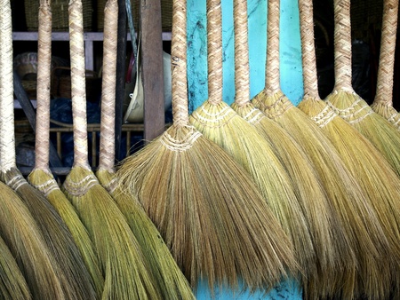 Broom, Thai traditional hand craft, made by broomstick and wooden.