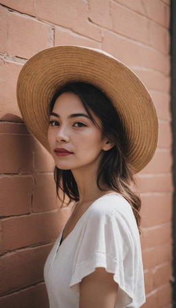 Woman In A Straw Hat Next To A Wall On Independence Day Or Cinco De Mayo. Generative AI