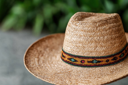 Close-up image of a straw hat showing its natural weaving patterns, symbolizing summer, style, and sun protection.