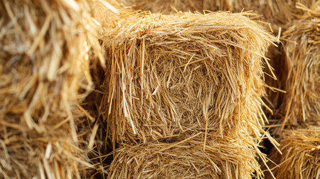 Golden Harvest Hay Bales Neatly Stacked, Awaiting Use as Livestock Feed and Winter Bedding