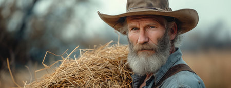 Hardworking Farmer Carrying Hay in Field During Harvest Season.