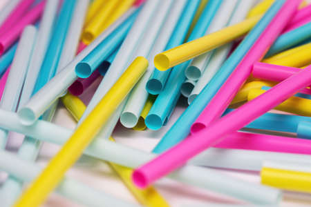 Drinking straws for colored background. Colorful plastic straws used for drinking water or soft drinks
