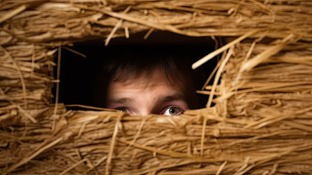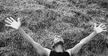 portrait of a young man in the hay closeup