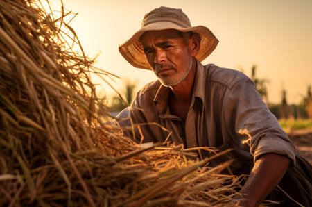 Resilient Male farmer harvests. Agriculture rural occupation harvesting season. Generate ai