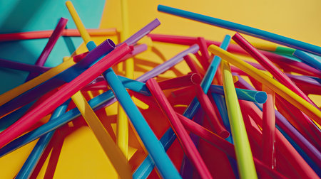 A playful shot of colorful straws lying randomly on a table, showcasing a burst of color.